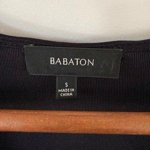 Aritzia Babaton navy/black faux wrap dress, gathered waist, tulip skirt, long sleeves. 100% viscose. Excellent condition! Size small.