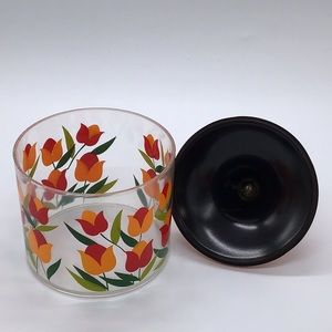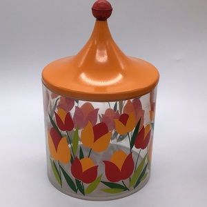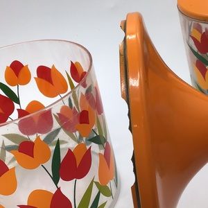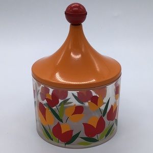 Eye popping wonderful retro orange & red tulips on clear acrylic with composite plastic material lids and knobs
