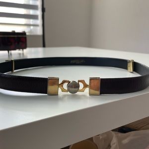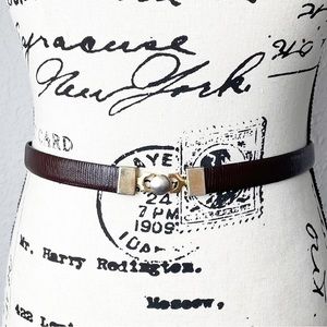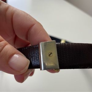 Vintage Cuero Vaca Industria Argentina Dark Brown Adjustable Leather Belt w/Gold Hardware See some tarnishing on gold hardware.