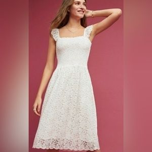 Anthropologie Maeve Anastasi Lace White Midi Dress