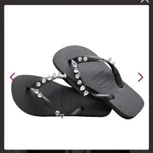 In partnership with Swarovski our newest Top Spikes flip flop is the must-have embellished footwear of the season. Featuring large spiked Swarovski crystals on the straps of our classic Top silhouette, step out and make a bold statement but always keep it comfortable.