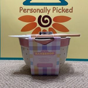 The Bakeshop BUNNY batter bowl & baking utensil set. Set includes batter bowl, large spatula, bunny cookie cutter, and small spatula. Brand new!