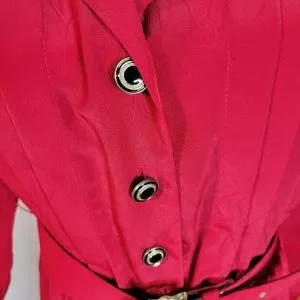 Vntg Leslie Fay Petites USA Made Button front Pleated Skirt Red dress Size 12