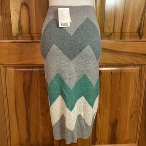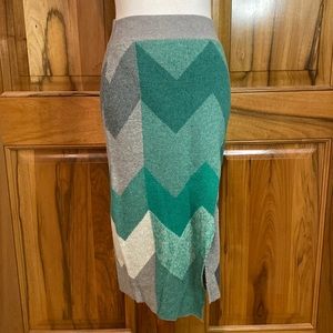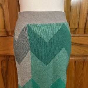 NWT Moth - Anthro - NWT - Gray/Green Chevron Knit Asymmetrical Skirt - EUC - S