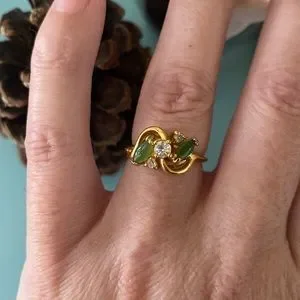 Vintage 18K Gold HGE Jade Gemstone Crystal Ring 6