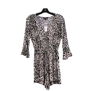 BNWT! Express Factory Cheetah Print Surplice Bell Sleeve Romper Size XXS