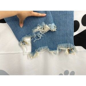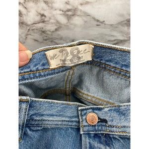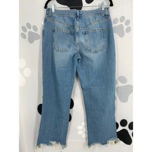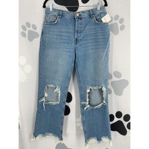 Free People NWT Maggie Mid Rise Straight Leg Blue Denim Chewed Hem Jeans 28 New