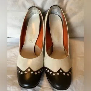 Vintage/MCM 1950s Guild House Leather spectator pumps, size 5.5 AA, brown/ivory. These shoes are 70 years old and look great for that age. These are a classic style and still being produced by high end designers today. These are a great deal for someone’s tiny feet.
