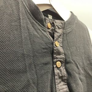A trio of woodgrain buttons lines the placket of a sleeveless knit bodysuit that makes outfitting a breeze.