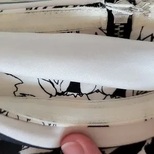 Never worn, no tag. Beautiful strapless b&w striped dress with flower print. Stretchy breathable fabric. The edge of the neckline has a thin rubber band to prevent sliding (see image). Small back slit. Size US 2.