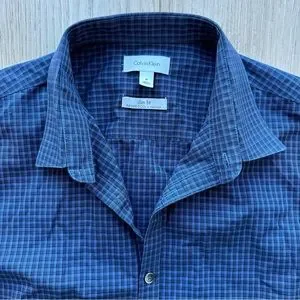 Calvin Klein Men’s Slim Fit & Non-Iron Button Down Blue & Navy Plaid Dress Shirt
