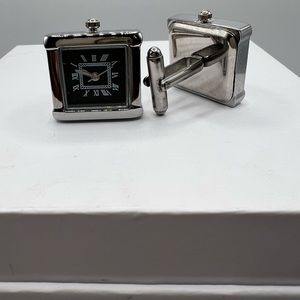 Square Real Clock Cuff links With Battery Digital Mens Watch Cufflink