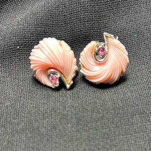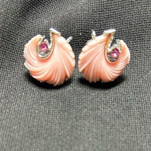 VTG Signed Beautiful Pink Plastic and Silver Metal screw back earrings. Lisner.