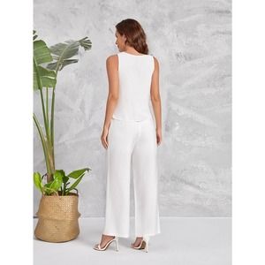 2 piece set: Cut Out Side Tank Top & Drawstring Waist Wide Leg Pants white