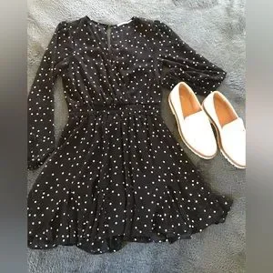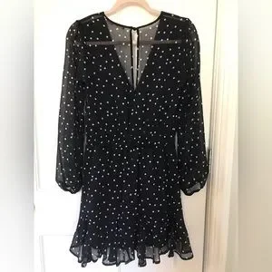 Mi Ami Black Chiffon V neck Mini Dress with White Polka Dots Size Small
