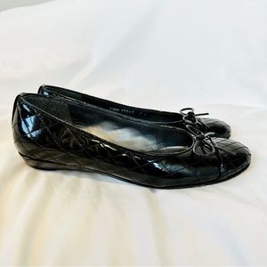 Stuart Weitzman bow quilted patent leather ballerina black flats Quilty