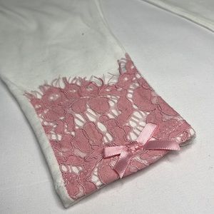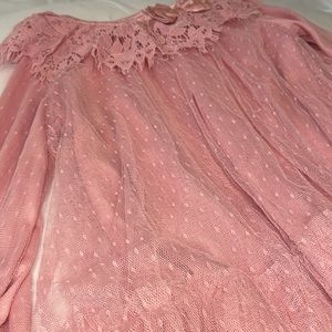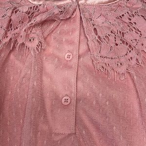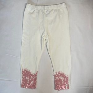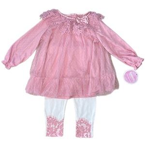 BRAND NEW, NEVER WORN! Nannette Baby Girl Two-Piece Set. Size 24M. Pink long-sleeved blouse with lace design and cream pants with lace design at the ankles.