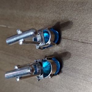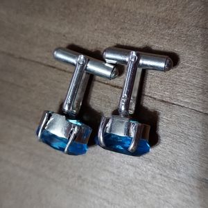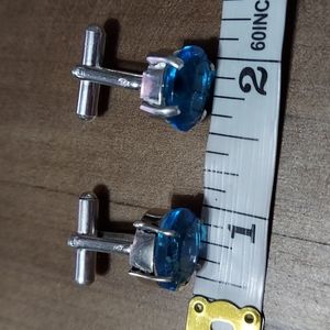 Stamped Sterling Silver Cuff Links. Gem: Blue Topaz. See pictures for measurements. NonSmoking home