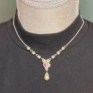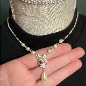 Vintage SAO Victorian Revival Faux Pearl, Bead, Rose, & Rhinestone Necklace