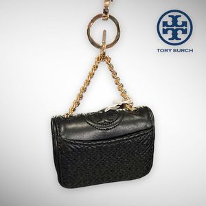 NWT Tory Burch Lil Fleming Key Fob / Bag Charm in Black Napa Leather $115