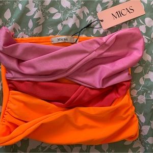 Contrast Twisted Front Tube Top- ORANGE / XS