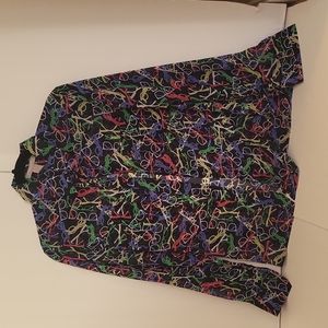 NWOT Banana Republic Multicolor Glasses Print Sheer Blouse, Size M