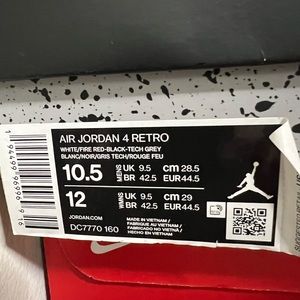 Air Jordan 4 Retro Fire Red (2020) Men’s Size 10.5 (Pre-owned)