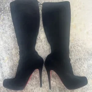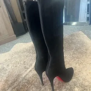 Gorgeous knee high Louboutins, black suede leather. Euc. 5 inch heel, slight platform. EU size 38, equivalent to a 7/7.5 US. Previously purchased from the realreal.