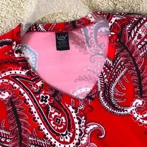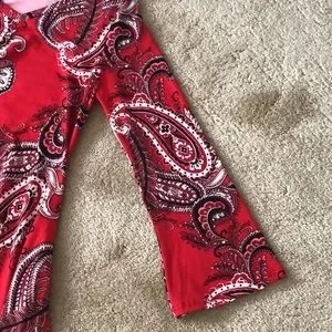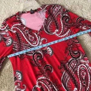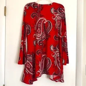 Lildy red paisley handkerchief hem tunic with subtle bell sleeve and side pockets. New condition.
