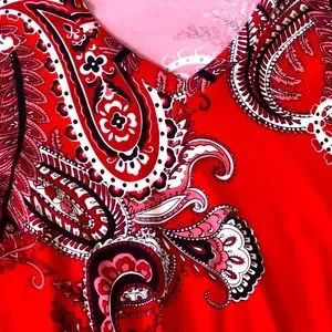 Lildy red paisley handkerchief hem tunic with subtle bell sleeves & side pockets