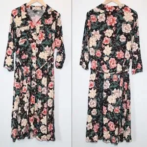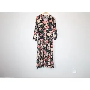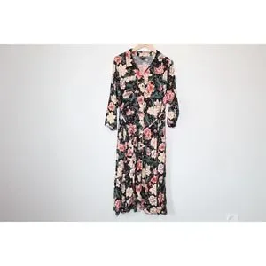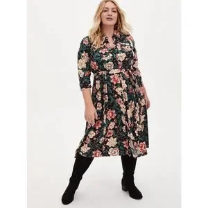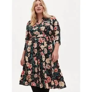 Torrid Floral Button Midi Challis Shirt Dress Black Plus Size 3 3X H14301