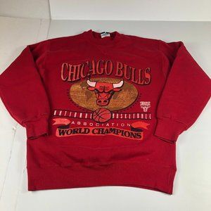 VTG Chicago Bulls World Champ Sweatshirt Adult Large Red Faded Big Logo Crewneck