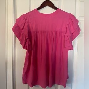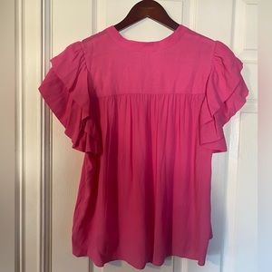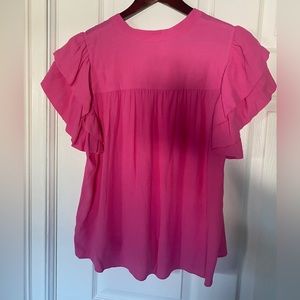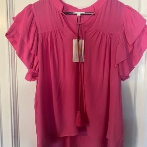 A Loves A Women Pink Tasseled Ruffle Layered Short Sleeve V-Neck Top Blouse Size L