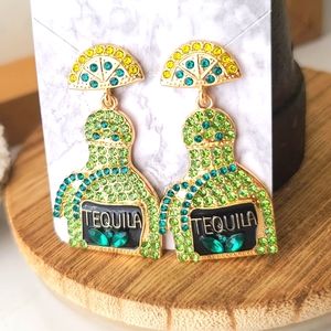 "Blingy Black-out" Bedazzled Tequila Bottle Earrings NEW