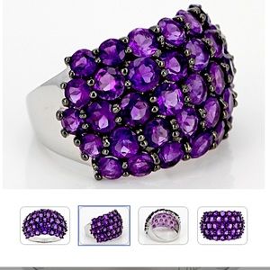 Show stopper 2.5 carats of genuine amethyst put together with black post work on a beautiful sterling silver base rhodium plated for shine. The color is absolutely magnificent. I have a size 8 and a size 9 I would prefer to sell the nine so I can keep the eight this ring is everything!! #PURPLE #purplerain