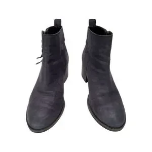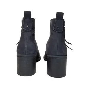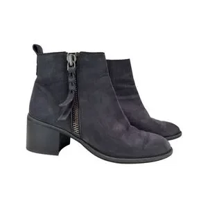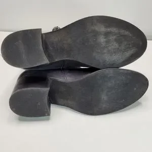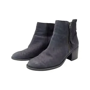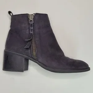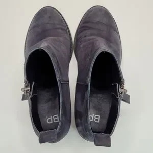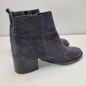 BP Navy Blue Leather Block Heeled Side Zipper Ankle Booties Size 7