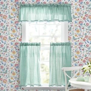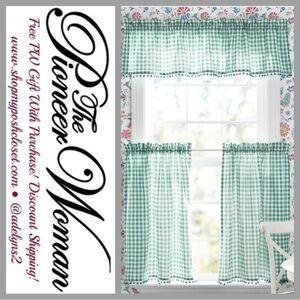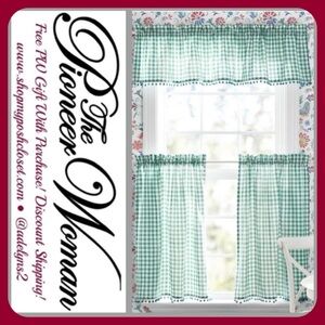 πΊ NWT The Pioneer Woman Gingham 3 pc Kitchen Curtains And Valance Set, Teal Blue