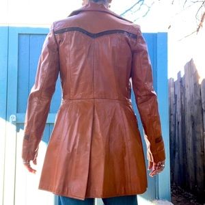 Tags: Ms. Pioneer leather jacket snakeskin orange brown hand pockets button front spring fall 3/4 length jacket boho southwest coat rock and roll streetwear