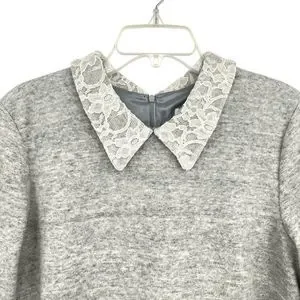 Leonor Silva for Anthropologie, Etain, Women's Gray Shift Dress with Lace Collar 3/4 Sleeves