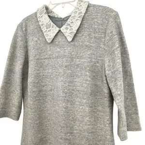 Anthropologie Leonor Silva Etain Dress Gray 3/4 Sleeves Lace Collar Women Large