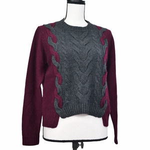 Size S. Burgundy Gray colors Cropped length. Cable knit weave on front. Crew neck. Super soft material. Revolve brand.