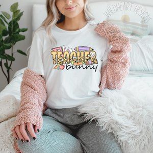Teacher Bunny T-shirt Easter Shirt Cute Easter Tee Unisex
