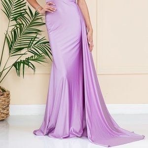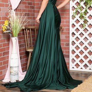 NEW LONG ONE SHOULDER SLEEVELESS SHEATH DRESS WITH SIDE CAPE SKIRT & ZIP AC 387