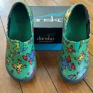 Green frog print Dansko clogs for kids! New in box!