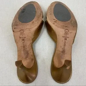 Manolo Blahnik Gold Leather Embellished Slide Sandals