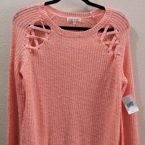 Love More Peach Orange Sweater with Shoulder Cut Outs Size Medium. NWT.