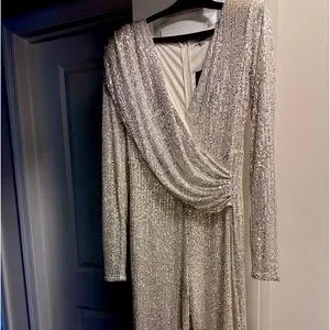 B beautiful sequins jumpsuit padded, shoulders, long sleeve never worn