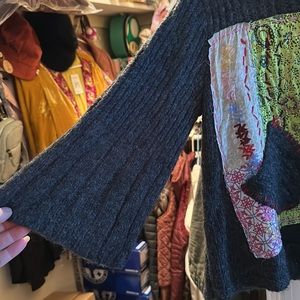 Free People BellSleeve, Sweater/cropped. Size medium. Button up front. Two small pockets on the sides. RARE. Please see pictures of the tags for the materials and how to care for this item. Just zoom in on the pictures. I know they’re kind of hard to see. Made of acrylic and wool. There are no flaws, stains, or any holes that I can find. I hate to see this one go, but I don’t wear it as much as I should. Smoke free home. Lowball offers will be ignored. Will ship for free if you pay asking price. And I may go lower shipping will be discounted but not free.