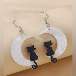 🐈⬛ Black Cat & Moon Design Earrings NWT