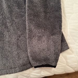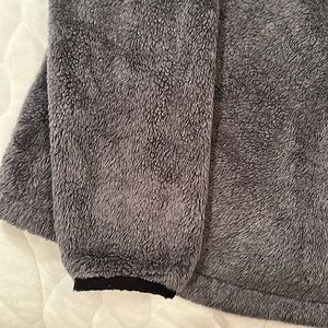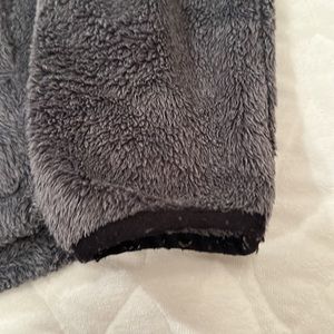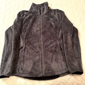 Women’s The North Face Osito faux fur jacket in charcoal gray and metallic logo and zipper. Zip closure and pockets. Pre loved condition. Size small